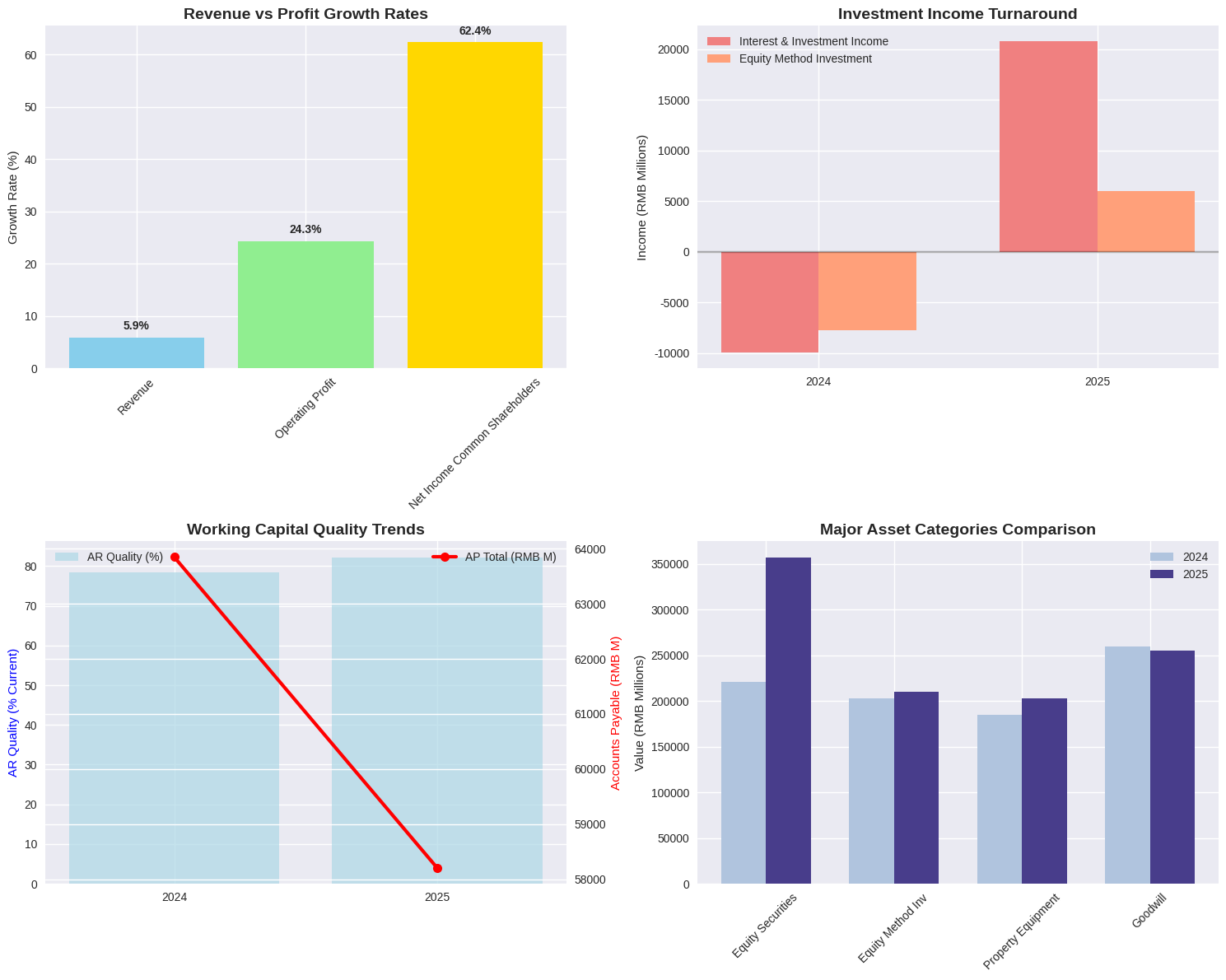 • 营运资本改善: 应付账款下降8.8%,应收账款质量提升